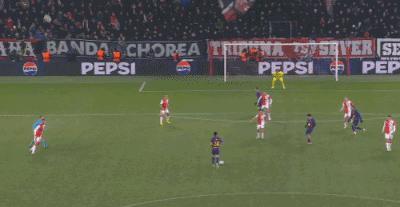 比赛开局也印证了这一点,边路推进迟缓,中路渗透频频被限制,第10分钟甚至先丢一球。主队开出角球,霍莱什头球摆渡,库谢伊后点破门打破僵局,巴萨0-1意外落后,那段时间的巴萨,完全没有一支豪门的样子。