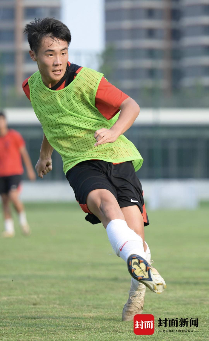 2025年7月,帅惟浩在成都蓉城足球俱乐部基地训练。陈羽啸摄2025年,帅惟浩代表成都蓉城B队在中乙联赛出场20次打进5球,国家队层面,在U17亚洲杯预选赛作为国足锋线箭头,打入9粒进球,表现优秀。在今日获颁中国金童奖后,帅惟浩发表获奖感言,感谢了教练、队友、家人的支持,“这份荣誉属于每一个帮助过我的人,它不是终点,而是新的起点。今后我会更加努力,脚踏实地,刻苦训练,不辜负大家的信任与期待。”