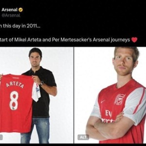 直播吧8月31日讯 在2011年的今天,现任球队主帅阿尔特塔以及默特萨克开启了枪手生涯,阿森纳官推也晒出两人当时的照片作...