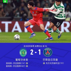 北京时间1月21日欧洲冠军联赛 联赛阶段 第7轮,葡萄牙体育对阵巴黎圣日耳曼。上半场马尤卢犯规在先,扎伊尔-埃梅里头球破...